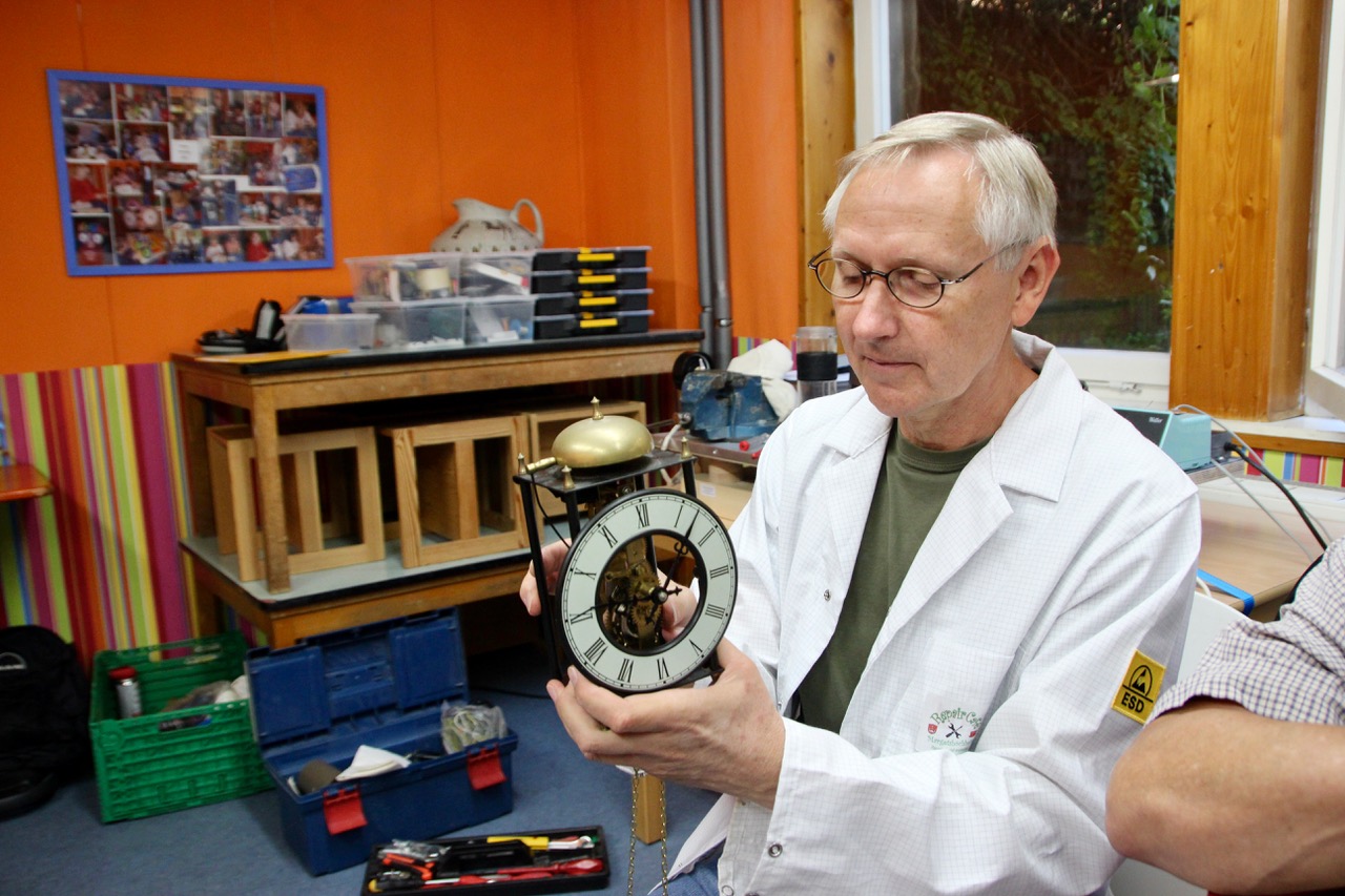 Die Mechanik einer Uhr konnte trotz vieler Mühe nicht instand gesetzt werden, ein zerbrochenes Backbrett wurde fachmännisch geleimt.