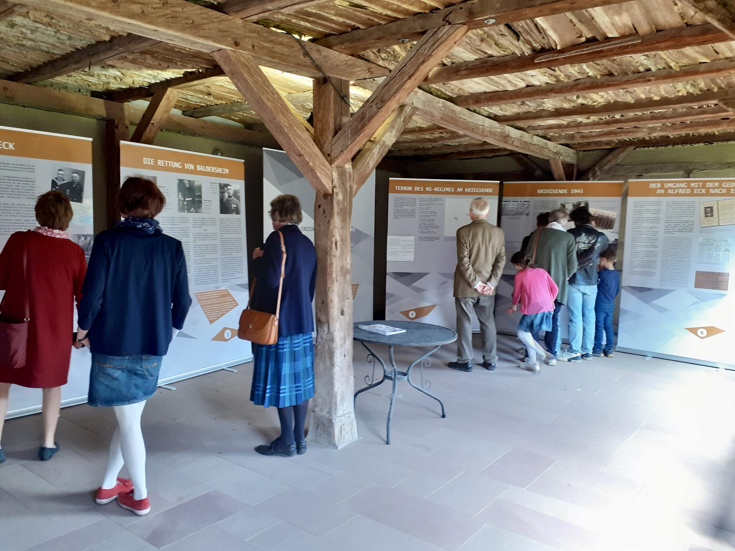 Am letzten Tag der Ausstellung „Alfred Eck, die Retter von Baldersheim“ kamen nochmal etliche Interessierte, um sich zu informieren. Viele Besucher bedankten sich explizit bei Peter Etthöfer, dass er diese Ausstellung nach Margetshöchheim gebracht hat und hoffen, dass sich noch weitere Gemeinden diese Infotafeln aus Aub ausleihen mögen.