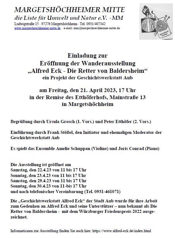 Diese Ausstellung holt nun die Margetshöchheimer Mitte nach Margetshöchheim: